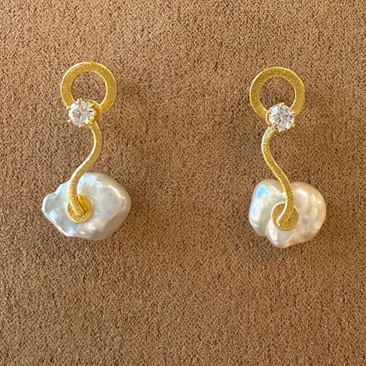 Keshi Pearl Earrings with Freshwater Pearl and Cubic Zirconia Centers