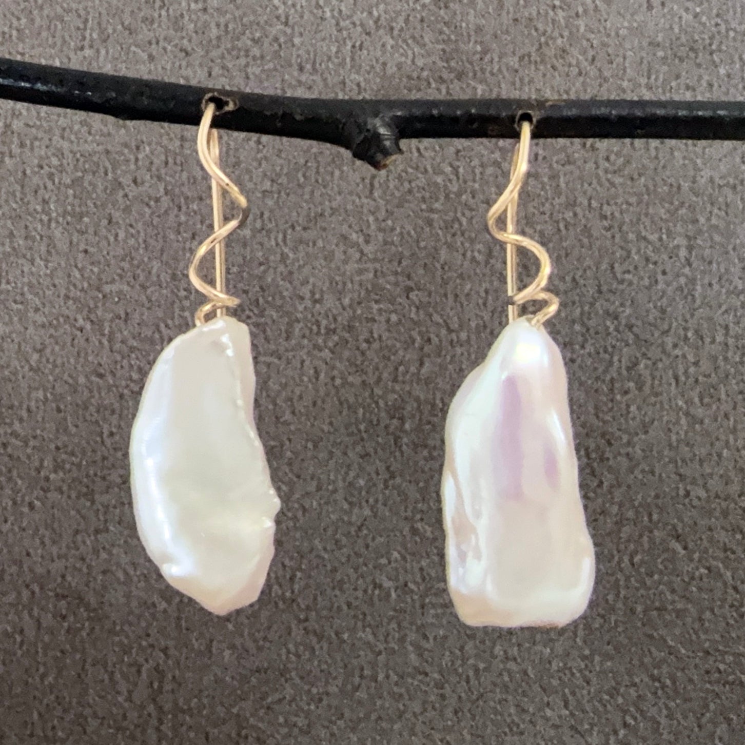 Large White Baroque Pearls with Gold filled ear wires, 1 ½ “X 7/16”, Mar_079Variant sold out or unavailable