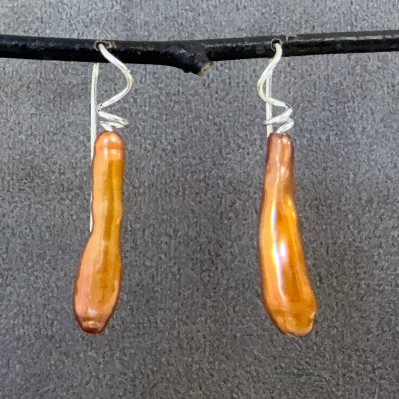 Coppery Baroque Pearls with Sterling ear wires, 1 9/16 “X ¼”, Mar_093Variant sold out or unavailable