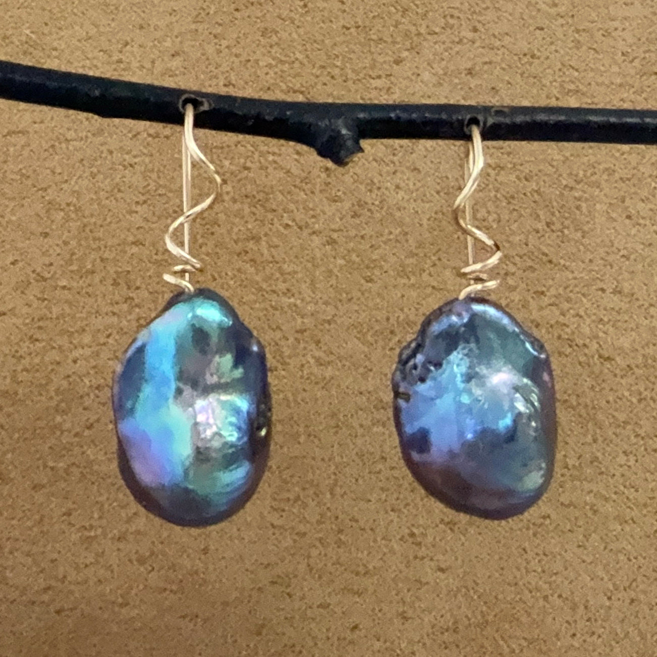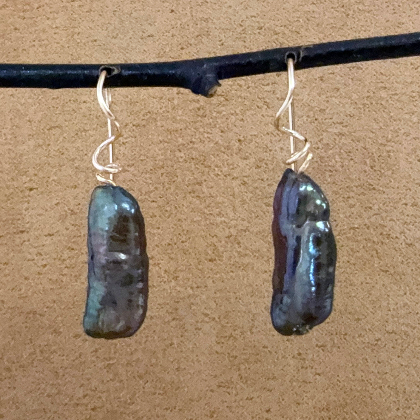 Iridescent Baroque Pearls with Sterlingear wires, 1 7/16 “X 5/16”, Mar_096Variant sold out or unavailable