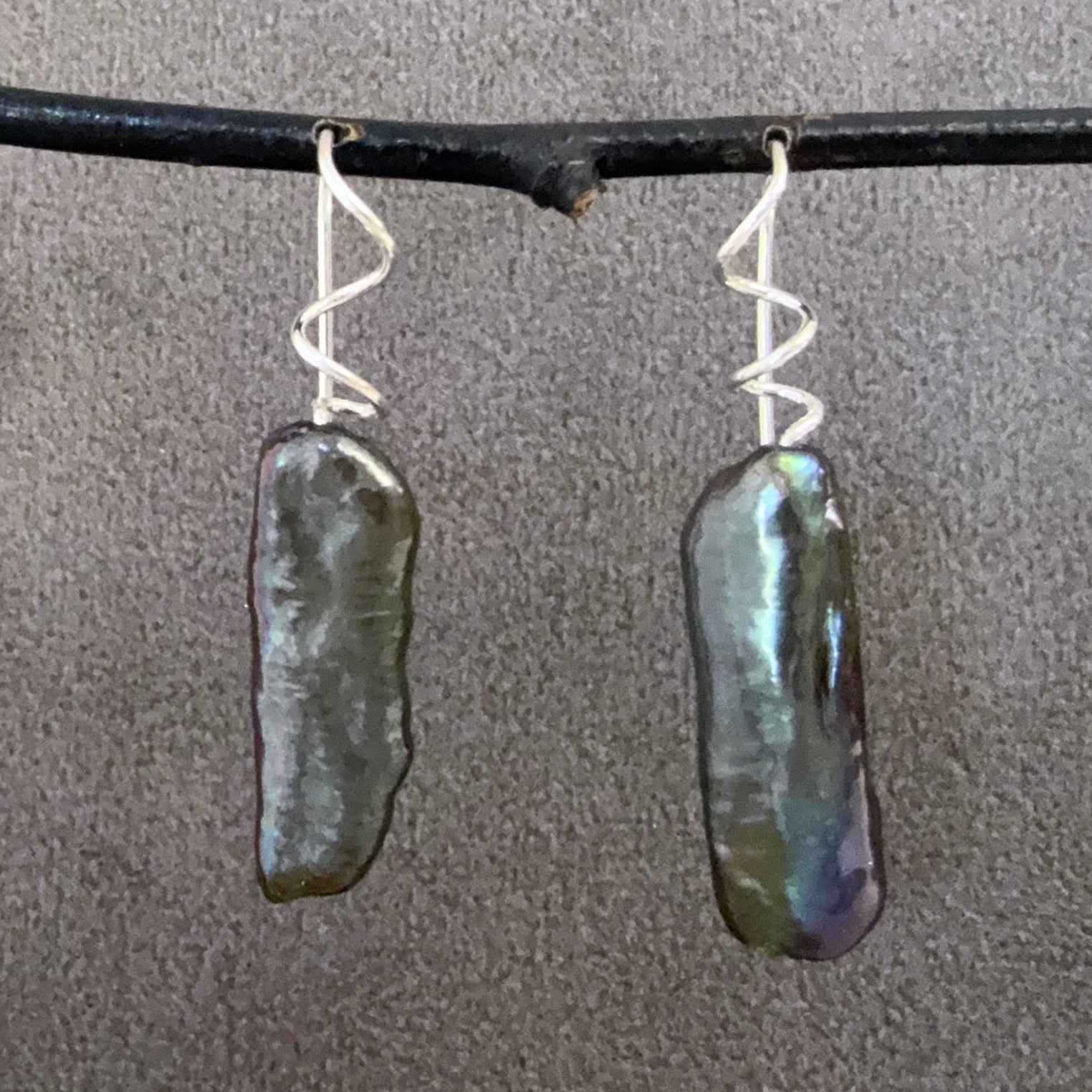 Grey Baroque Pearls with Sterling ear wires, 1 ½ “X 5/16”, Mar_099Variant sold out or unavailable